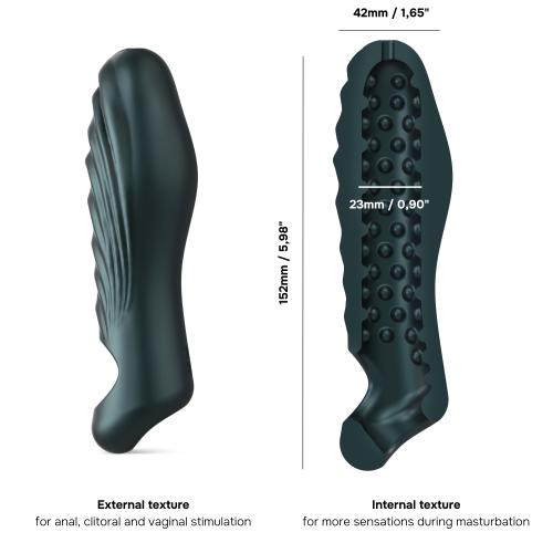 Discover ultimate versatility with the Man.Wand Ryzer – Pine Grey, an innovative pleasure sleeve designed for every kind of play. The extra-soft liquid silicone body offers three distinct uses: as a penis sleeve for couple play, a masturbator for solo stimulation, or a textured stimulator for focused pleasure.