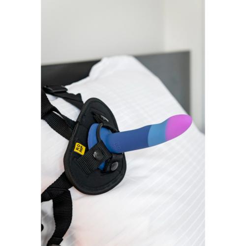 Le harnais s’ajuste facilement à différentes morphologies et reste bien en place pendant le jeu. Le godemichet compact en silicone sûr pour le corps est parfait pour les débutants.