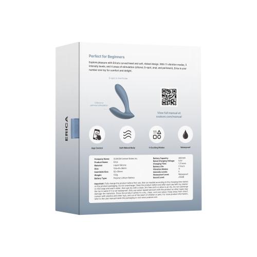 De Svakom Erica draagbare panty vibrator heeft 2 krachtige motoren en stimuleert tegelijkertijd zowel de G-spot als de clitoris. Met de Svakom App geniet je van talloze mogelijkheden, waar je ook bent! Of maak het extra spannend en geef de controle over aan iemand anders, afstand vormt geen probleem meer met de Svakom App, want je kunt wereldwijd een connectie maken. De vibrator is voorzien van 11 heerlijke vibratiestanden, wissel af tussen krachtige vibratiepatronen en een heerlijke mix van interne, externe of dubbele stimulatie. Het silky soft siliconen voelt ongelooflijk comfortabel aan op de huid en dankzij het flexibele en ergonomische ontwerp past ze zich perfect aan aan jouw lichaam waardoor je precies op de goede plekjes wordt gestimuleerd. Reinig de vibrator na gebuikt met lauwwarm water en een toycleaner en dep eventueel droog met een pluisvrije doek. Erica wordt geleverd met USB-kabel en gaat tot wel 60 minuten mee bij een volle accu.