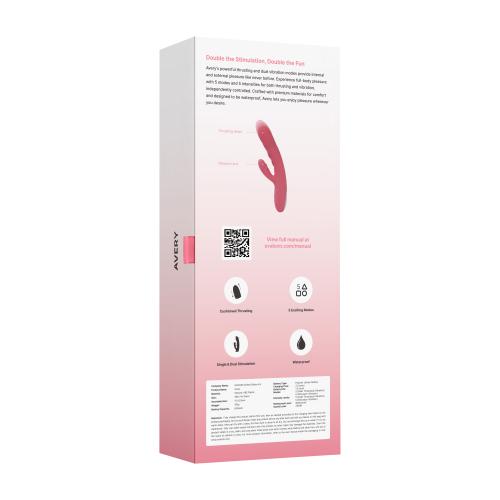 Oto Svakom Avery – wibrator króliczek z funkcją ruchu penetracyjnego, który jednocześnie stymuluje punkt G i łechtaczkę. Sztywny, ale miękki trzon porusza się w 5 trybach i 5 poziomach intensywności, podczas gdy wibrujące uszka pracują niezależnie.